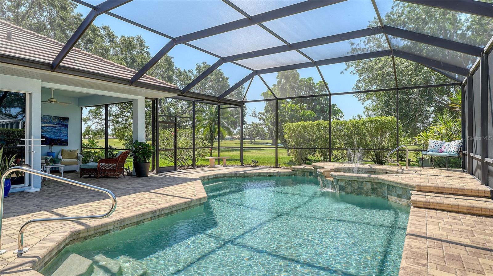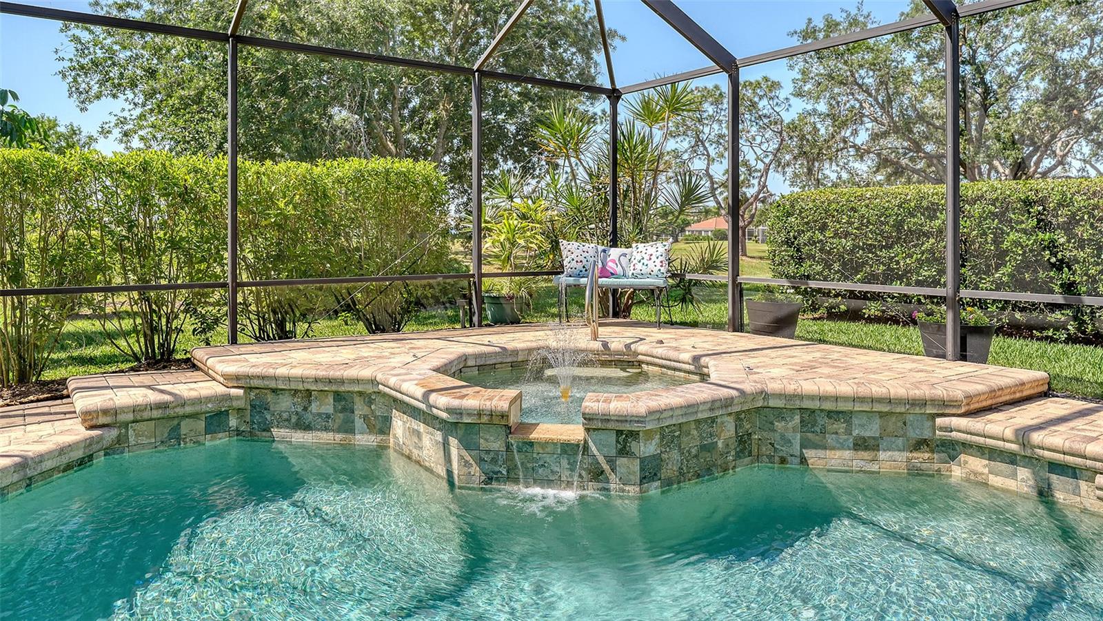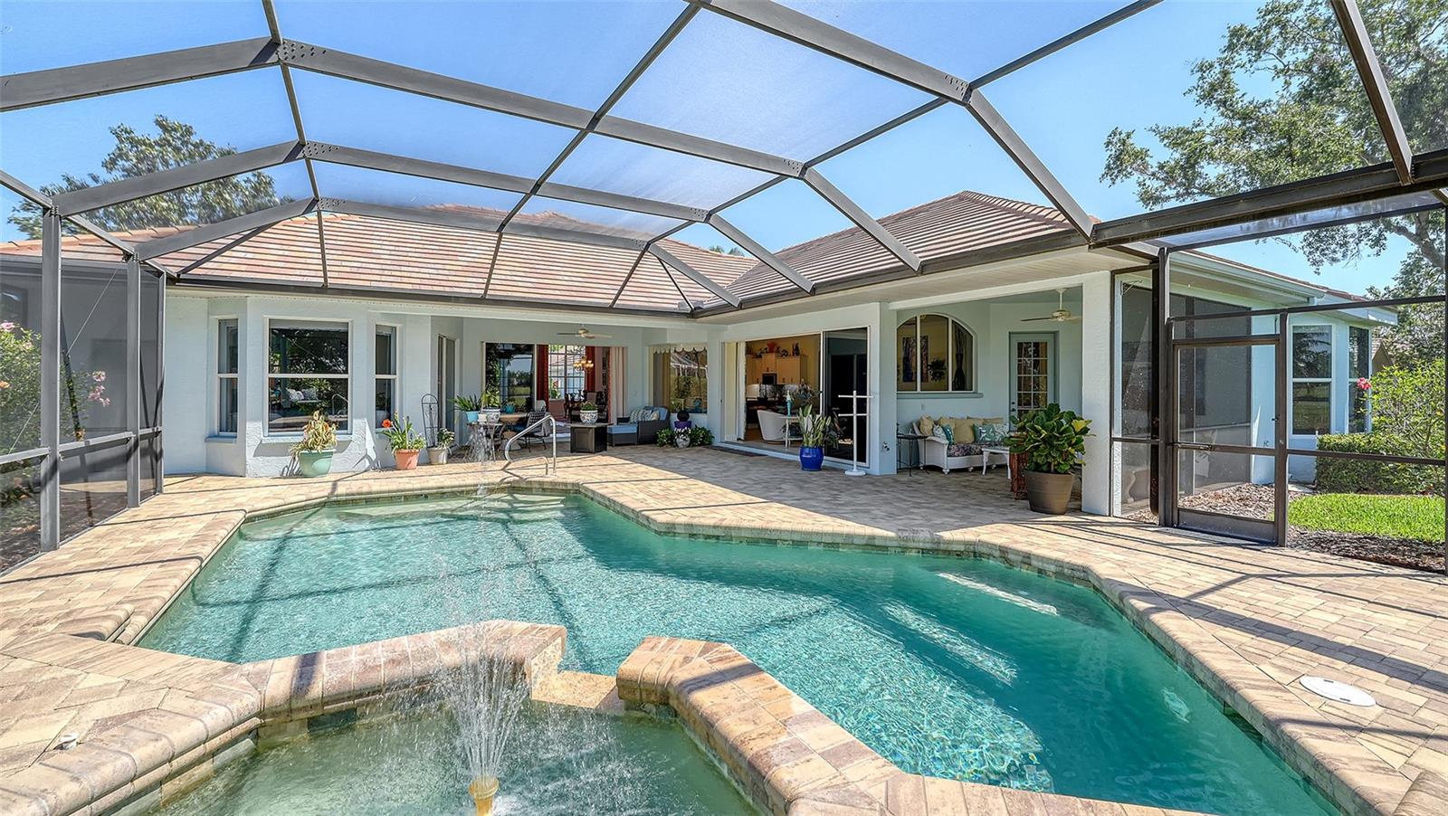 Step outside and unwind on your private lanai, where sweeping views of the golf course and two picturesque ponds set the stage for tranquil mornings and relaxing evenings. Enjoy the Florida lifestyle year-round with your saltwater pool and spa, surrounded by lush, mature landscaping that enhances the feeling of peace and seclusion. For the outdoor chef, a future cabana-ready space awaits--lanai is thoughtfully roughed in with electric and water for a custom grill and summer kitchen.